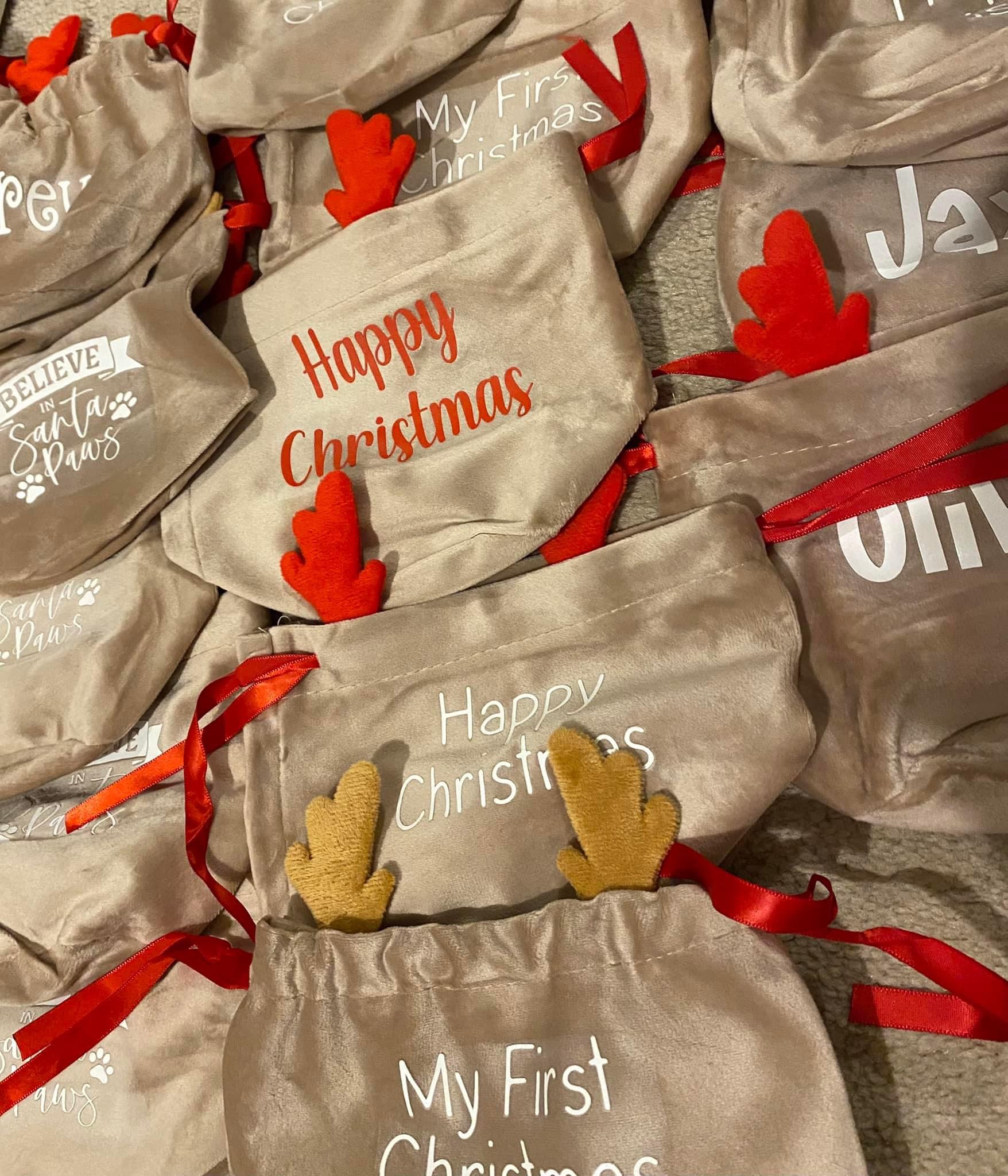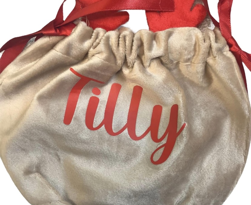 Personalised Reindeer velvet treat bag